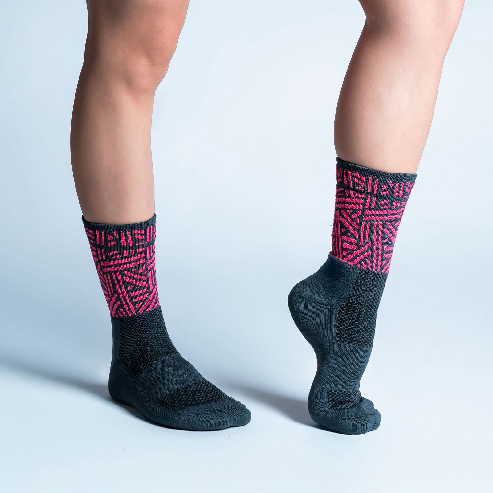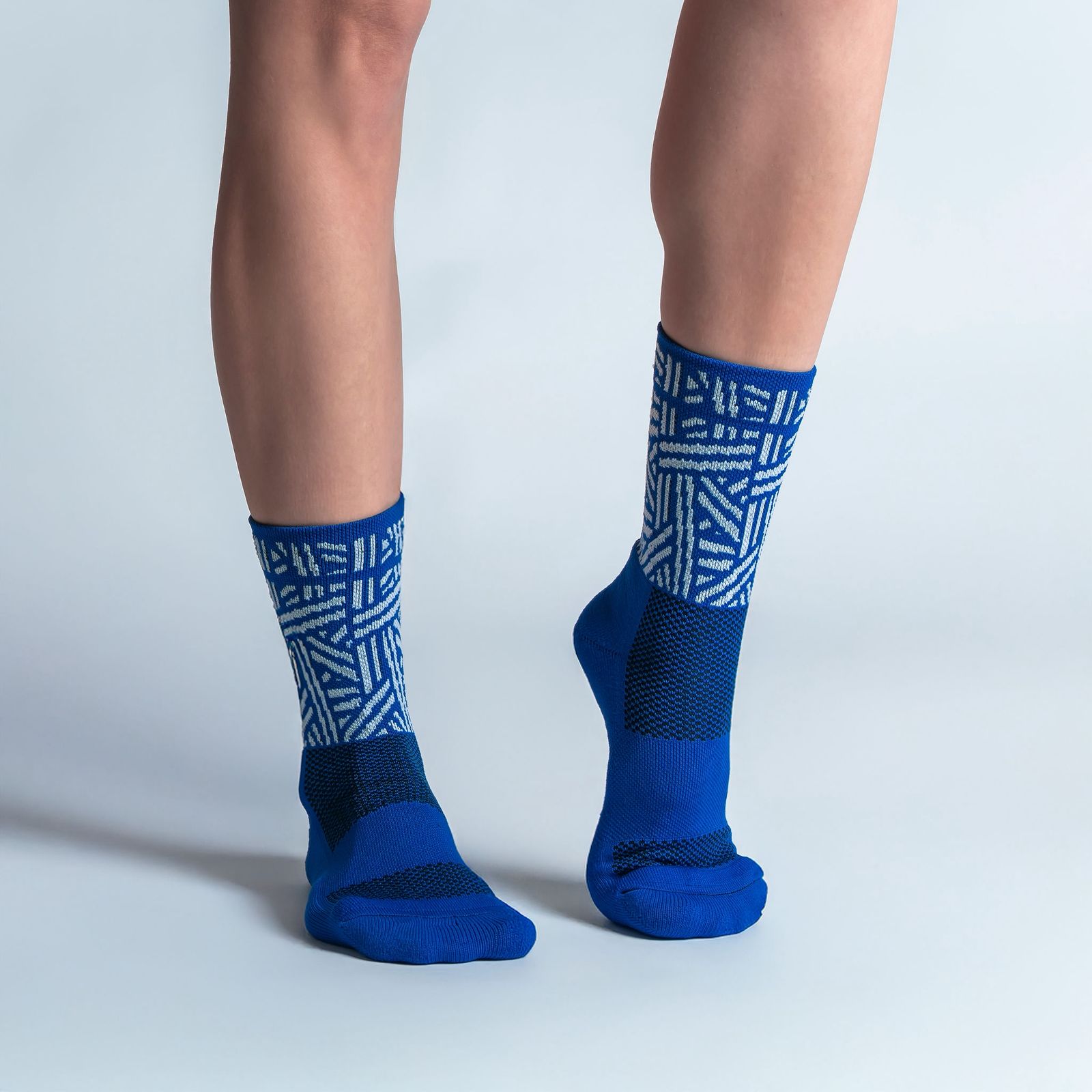 Las calcetas deportivas Geometric Vibes combinan rendimiento de alto nivel con un diseño único de patrones geométricos en colores vibrantes. Su tecnología de compresión media, costuras antiampollas y tejidos transpirablesgarantiza comodidad y soporte en cada entrenamiento o competencia.