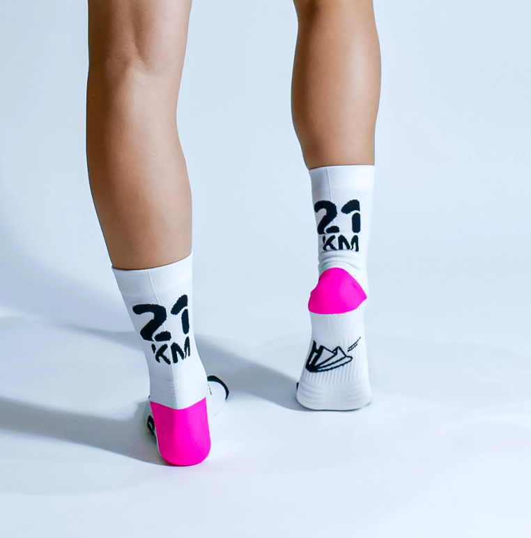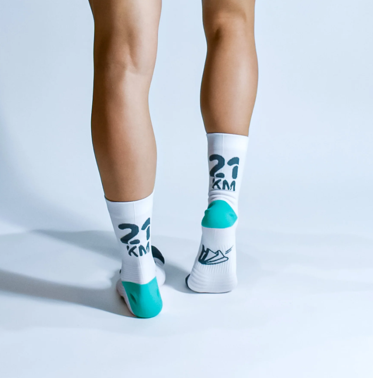 Prepárate para conquistar tu próxima media maratón con las calcetas deportivas personalizadas Modelo 21 KM.